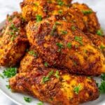 Air fry the chicken for 8 to 10 minutes, flipping halfway through the cooking time. The chicken should be beautifully browned, and an internal temperature of 165°F (74°C) ensures it’s safe and juicy.