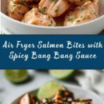 Garnishing with freshly chopped green onions, sesame seeds, or even thinly sliced fresh chili peppers can add freshness, visual appeal, and a hint of extra flavor to your Air Fryer Bang Bang Salmon Bites Recipe.