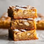 - Cool and Serve: Remove from oven and allow the blondies to cool completely in the pan. Optionally dust the top with powdered sugar before slicing into bars and serving.