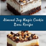 Almond Joy Magic Cookie Bars are a deliciously rich and easy-to-make dessert featuring a buttery graham cracker crust layered with sweet shredded coconut, semisweet chocolate chips, chopped almonds, and a generous drizzle of sweetened condensed milk. Baked to golden perfection, these bars offer the classic flavors of the beloved Almond Joy candy in a convenient bar form, perfect for parties, snacks, or anytime indulgence.