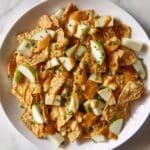 - Arrange Apple Slices: Lay the apple slices out on a large plate or platter in a circular or layered pattern to create an appealing base for your nachos.