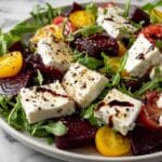 A vibrant and refreshing Beet Salad with creamy goat cheese, crisp Granny Smith apple slices, and crunchy toasted walnuts, all tossed in a tangy balsamic vinaigrette. Perfect as a light lunch or side dish, this salad balances earthy roasted beets with fresh greens and a hint of sweetness.