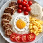 Plate the fluffy scrambled eggs alongside your golden sausage patties, warm biscuits, and the fresh tomato slices. This balanced breakfast feast looks inviting with its blend of warm tones and fresh reds. Now, dig in and enjoy every delicious bite of this cozy, comforting Breakfast Feast with Scrambled Eggs, Sausage Patties, Biscuits, and Tomatoes! Recipe you’ve lovingly created.
