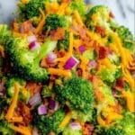 This Broccoli Salad Recipe keeps well for up to three days in the fridge. Store it in an airtight container to maintain freshness and texture, but note that the salad will soften slightly as it sits, which some folks actually love for that mellow flavor blend.