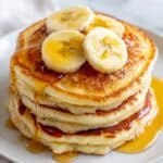 - Serve: Serve the pancakes hot topped with butter and maple syrup. Add optional sliced bananas, walnuts, or chocolate chips as desired for extra flavor and texture.
