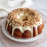 Allow your cake to cool in the pan for 10 to 15 minutes before releasing it onto a wire rack to cool completely. If you’re using the optional glaze, whisk powdered sugar, milk or creamer, and vanilla together until smooth, then drizzle it over the cooled cake for a sweet, glossy finish that makes every slice irresistible.