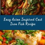 This Cast Iron Asian Inspired Fish recipe features perfectly seared white fish fillets marinated in a flavorful blend of soy sauce, sesame oil, rice vinegar, honey, garlic, ginger, and hoisin sauce. Cooked in a cast iron skillet for a crispy exterior and tender interior, it’s garnished with green onions and sesame seeds for an authentic Asian flair. Ready in just 20 minutes, it’s a quick and delicious meal ideal for weeknights.