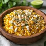 While the corn cools slightly, whisk together mayonnaise, sour cream, chili powder, smoked paprika, and the fresh juice of one lime in a bowl until smooth. This vibrant dressing is the heart of the recipe, infusing each kernel with creamy, tangy, and smoky notes that will make your taste buds dance.