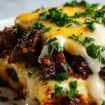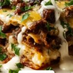 These Cheese-Loaded Carne Asada Tacos are a delicious Mexican-inspired dish featuring marinated and grilled flank or skirt steak, topped with melted Mexican cheese, fresh cilantro, avocado, and red onions, all wrapped in warm tortillas. Perfect for a flavorful and satisfying meal that combines tender, smoky beef with creamy cheese and zesty lime.