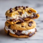 Delight in these decadent Cheesecake Stuffed Chocolate Chip Cookies, featuring a soft chocolate chip cookie exterior encasing a creamy cheesecake center. Perfectly baked to achieve golden edges with a gooey, luscious middle, these cookies offer the best of both worlds for dessert lovers.