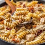 - Cook the Pasta: While the chicken cooks, bring a large pot of salted water to a boil. Add the spiral pasta and cook until al dente according to package instructions. Reserve 1 cup of pasta water before draining the pasta and setting it aside.