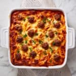 This Cheesy Meatball Pasta Bake Recipe freezes beautifully. Wrap the casserole tightly with foil and plastic wrap or transfer to a freezer-safe container. Freeze for up to 2 months, and you’ll have a ready-to-bake comfort meal when time is tight.