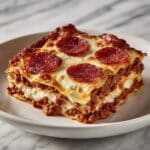 - Assemble in baking dish: Pour this mixture into the prepared baking dish and spread it evenly. Top with shredded mozzarella cheese, pepperoni slices, and grated Parmesan cheese for a melty, savory top layer.