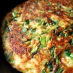 - Cook the Fritters: Heat a pan over low heat. Pour the batter into the pan and spread it evenly to form one large pancake-like fritter. Cover the pan with a lid to cook evenly for about 6 minutes. Carefully flip the fritter using a spatula and cook for an additional 3 minutes until the fritter turns golden brown and is cooked through.