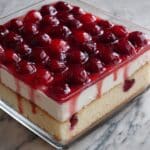 - Top with Cherries: Evenly spread the cherry pie filling over the cake mixture, ensuring the whole surface is covered with the luscious cherry topping.