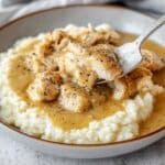- Combine & Serve: Return the seared chicken breasts to the skillet, coating them thoroughly with the creamy gravy. Allow the chicken to simmer gently for 5 to 7 minutes so it cooks through and absorbs the flavors of the sauce. Serve the chicken hot over a bed of instant mashed potatoes, rice, or biscuits for a hearty and satisfying meal.