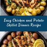 This Chicken and Potato Skillet recipe features tender, marinated chicken breasts paired with crispy golden baby potatoes. The chicken is marinated in a flavorful blend of olive oil, soy sauce, honey, Dijon mustard, and garlic, then seared to perfection alongside pan-fried potatoes. Finished with a sprinkle of fresh parsley and served with zesty lemon wedges, this dish is a wholesome, satisfying meal perfect for any weeknight dinner.