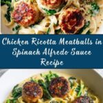 Delicious and creamy Chicken Ricotta Meatballs in a flavorful Spinach Alfredo Sauce, perfect for a comforting Italian-American main course. These tender meatballs combine ground chicken with ricotta and Parmesan cheeses, baked to perfection and served in a rich, garlicky spinach Alfredo sauce. A satisfying dish ideal for weeknight dinners or special occasions.
