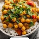 This chickpea curry freezes beautifully. Cool the curry completely, then transfer to a freezer-safe container for up to 3 months. Thaw overnight in the fridge before reheating.