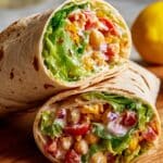 A fresh and healthy Chickpea Salad Wrap recipe featuring a tangy lemon dressing, crisp vegetables, and optional feta cheese. Perfect for a quick, nutritious meal ready in just 15 minutes, these wraps combine protein-rich chickpeas with vibrant flavors wrapped in whole wheat or spinach tortillas.