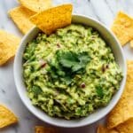 Gather your taste buds and see if the guacamole needs a little extra salt or lime juice to hit the perfect balance. Once you’re happy with the flavor, it’s ready to serve! For best presentation and freshness, cover the bowl tightly with plastic wrap pressed directly on the surface to keep it from browning before serving.