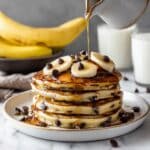 These pancakes freeze beautifully! Lay them out on a baking sheet in a single layer, pop them in the freezer until solid, then transfer to a freezer-safe bag. They’ll keep for up to a month, ready to be heated up whenever a chocolate chip banana pancake craving hits.