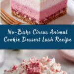 If you’re looking for a dessert that feels like a nostalgic hug in every bite, then the Circus Animal Cookie Lush Recipe is exactly what you need. This no-bake delight combines a buttery cookie crust, a luxuriously creamy cheesecake layer, smooth vanilla pudding, and fluffy whipped topping, all crowned with crunchy crushed frosted animal cookies and a pop of colorful sprinkles. Whether you’re celebrating a birthday, hosting a party, or just craving a playful, festive treat, this dessert brings smiles, memories, and a lot of yum to the table.