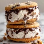 This Cookie Dough Ice Cream Sandwich recipe combines homemade cookie dough pieces with creamy vanilla ice cream and classic chocolate chip cookies to create a deliciously indulgent treat. You’ll first prepare a soft cookie dough, some of which is melted into the ice cream base while other parts are frozen and chopped into chunks to mix back into the ice cream. The final step sandwiches scoops of this flavorful ice cream between chocolate chip cookies for the perfect handheld dessert.