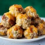 Reheat sausage balls in a 350ºF oven for about 10 minutes or until warmed through. Avoid microwaving if you want to keep that lovely crisp exterior.