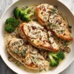 For a stunning family dinner or casual entertaining, try serving each chicken breast over a bed of garlic sautéed spinach or quinoa. You can also plate the broccoli and mushrooms off to the side in a separate dish, letting everyone ladle the creamy sauce over their portion for a lovely, interactive meal experience.