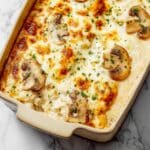 Chicken Gloria is a luscious baked chicken dish featuring tender chicken cutlets smothered in a creamy sherry and mushroom sauce and topped with melted Muenster cheese. This comforting recipe combines seared chicken with a rich, velvety sauce and bubbly browned cheese, making it an elegant yet easy meal perfect for family dinners or special occasions.