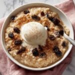 7. Serve: Serve the rice pudding immediately. Enjoy it on its own or with a scoop of vanilla ice cream for an extra indulgent treat.