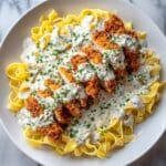 Transfer the mixture to a greased 9×13-inch baking dish (or keep it in your oven-safe skillet). In a small bowl, combine crushed buttery crackers or panko breadcrumbs with melted butter. Sprinkle this mixture generously over the pasta, then place under the broiler for 2 to 3 minutes or bake at 375°F for 10 minutes until the topping is golden and crackling crisp. This crunchy crown is what transforms the dish into the ultimate Creamy Crunchy Chicken Pasta Recipe, creating the most delightful texture contrast.