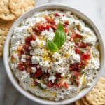 This Creamy Feta Bruschetta Dip is a delightful blend of fresh tomatoes, aromatic basil, and creamy cheeses, perfect for a quick appetizer or party dip. The combination of tangy feta with smooth cream cheese and sour cream creates a luscious base, topped with vibrant marinated bruschetta for a burst of flavor and texture.