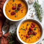 Yes! Feel free to add a pinch of red pepper flakes when roasting or a dash of hot sauce when blending for a spicy kick that pairs well with the soup’s sweetness.