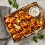 Reheat your Crispy Cauliflower Buffalo Wings Recipe in a preheated oven at 400°F (200°C) for 8–10 minutes or in your air fryer for about 5 minutes. This helps restore their crunch and warms the buffalo sauce back to that finger-licking perfection.