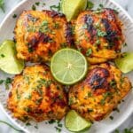 These Crispy Cilantro Lime Chicken Thighs are marinated in a zesty blend of lime juice, garlic, and spices, then seared to golden perfection on the stovetop before finishing in the oven for juicy, flavorful chicken with a perfectly crispy skin. A fresh cilantro garnish and lime wedges add a bright, aromatic touch, making this dish a vibrant main course perfect for weeknight dinners or casual gatherings.
