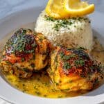 For an elegant presentation, plate the chicken thighs over a bed of sautéed greens or alongside a vibrant lemon-herb quinoa. Drizzle some of the cooking juices over the top and garnish with additional lemon zest for a fresh, bright finishing touch that will wow your guests.