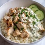 - Serve Warm: Serve the dish warm as a complete comforting meal combining juicy chicken, flavorful rice, and creamy tzatziki.