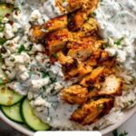 For a fun presentation, serve the chicken and rice directly from the baking dish on the table, letting everyone help themselves to the garnishes. Alternatively, consider plating individual portions topped with an extra dollop of tzatziki and a sprinkle of feta for a restaurant-worthy touch that’s sure to impress.
