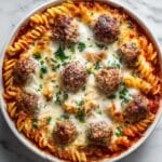 This Dump and Bake Meatball Casserole is an easy, one-dish meal perfect for busy weeknights. Combining uncooked rotini pasta, flavorful pasta sauce, precooked meatballs, and a blend of cheeses, this hearty casserole is baked right in the same dish, saving time and minimizing cleanup. The result is a comforting, cheesy pasta bake that’s both satisfying and simple to prepare.