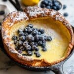 This Dutch Babies recipe features a fluffy oven-baked pancake served with a tangy homemade lemon curd and fresh blueberries. Perfect for a delightful brunch or a lovely dessert, the combination of warm pancake, zesty lemon curd, and juicy berries creates a refreshing and flavorful treat.