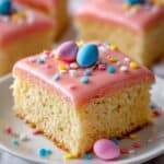 Easter Egg Sugar Cookie Bars are soft, buttery cookie bars topped with festive candy-coated chocolate eggs and pastel sprinkles. With a chewy sugar cookie base and vibrant decorations, these easy-to-make bars are perfect for Easter baskets, dessert tables, or springtime celebrations. No chilling or rolling required—just mix, press, and bake!