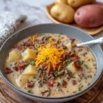 This Easy Cheeseburger Soup is the ultimate comfort food, combining classic cheeseburger flavors into a creamy, hearty soup. With ground beef, diced tomatoes, potatoes, cream cheese, and plenty of cheddar cheese, it’s a delicious, satisfying meal perfect for cozy dinners.