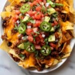Serve your nachos immediately with sides of sour cream, salsa, and guacamole for dipping. These cool and creamy accompaniments balance the heat and richness perfectly, making each bite better than the last.