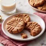 These easy peanut butter cookies require just four simple ingredients and come together in under 20 minutes. Soft in the center with a slightly crisp edge and a classic crisscross fork pattern, they are a perfect sweet treat for peanut butter lovers looking for a quick and delicious homemade cookie.