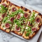 For an elegant touch, serve the Fig and Goat Cheese Flatbread Recipe on a rustic wooden board with small bowls of extra balsamic glaze and honey on the side. Cutting it into bite-sized squares or strips can make it a perfect finger food for parties. Alternatively, you can pair it with a cheese platter and fresh fruit for a Mediterranean-inspired spread that’s sure to impress.