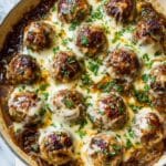 This French Onion Chicken Meatballs recipe combines tender chicken meatballs with a rich, caramelized onion and Gruyère cheese sauce. Baked to golden perfection and finished in a savory French onion gravy, this dish offers comforting flavors with a sophisticated twist, perfect for a hearty dinner or impressive gathering.