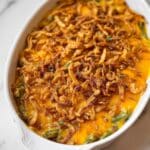 You can freeze this French Onion Green Bean Casserole Recipe either before or after baking. If freezing unbaked, wrap tightly and freeze for up to 2 months—just thaw overnight in the fridge before baking. For baked leftovers, freeze in airtight containers with a layer of foil on top to preserve texture.