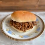 When you’re ready to eat leftovers or thawed frozen portions, reheat gently on the stovetop over low to medium heat, stirring frequently to keep the mixture smooth and prevent sticking. You can also microwave it in short bursts, stirring in between, until piping hot and ready to get sandwiched back into buns.